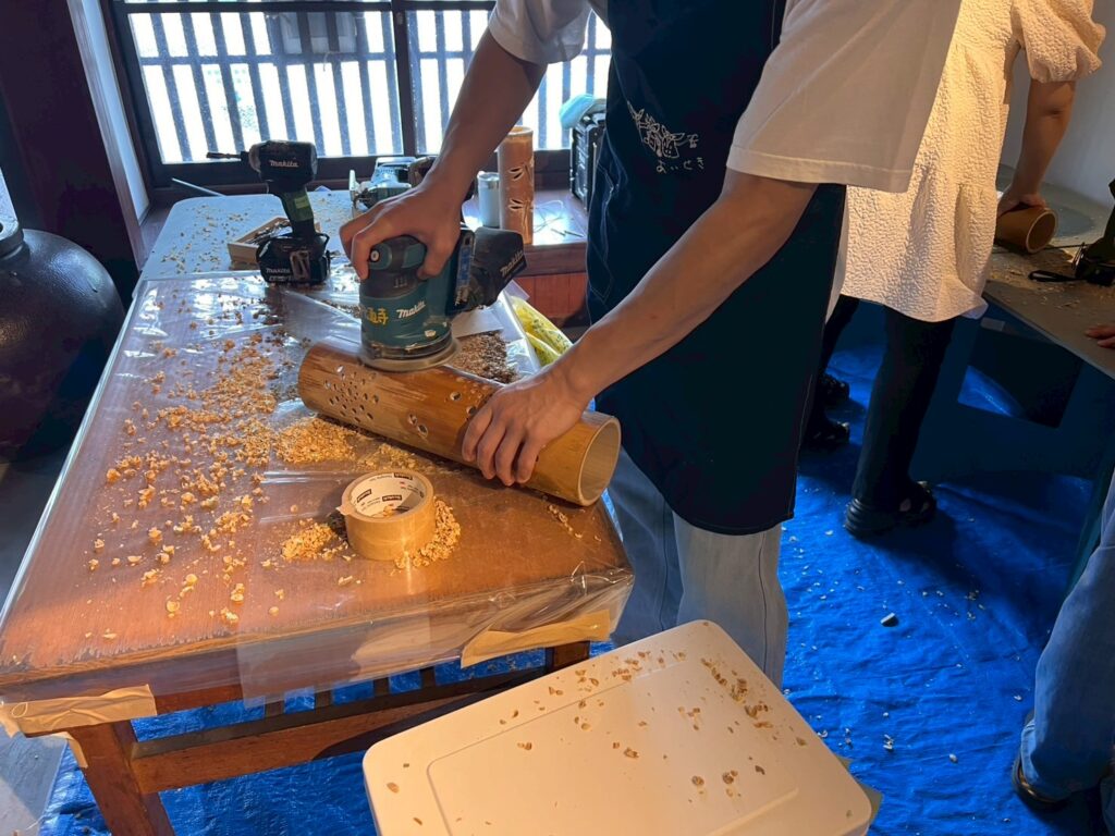 皆様に色紙を貼っていただく前に、電動やすりで表面をツルツルに磨き上げ、ケガのないよう丁寧に準備を進めました✨