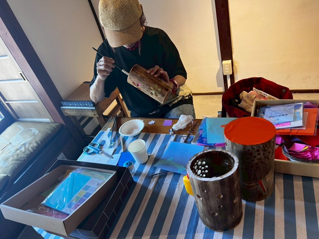 思い思いの色を選び、竹灯籠に彩りを加えていきました。