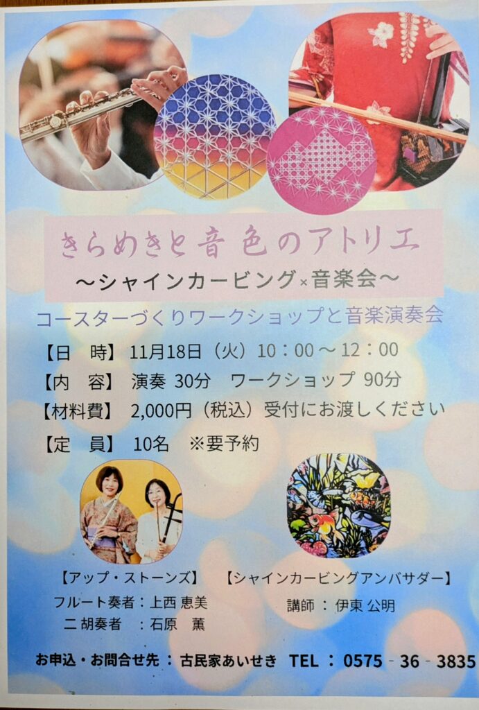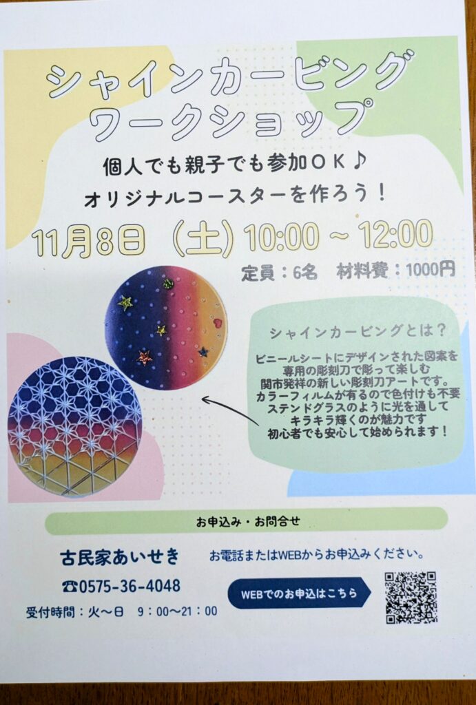 古民家あいせきでは、シャインカービングのワークショップを開催します。